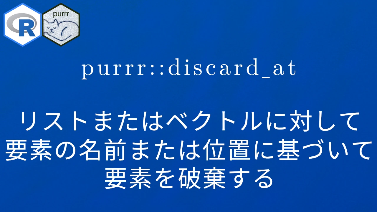discard_at()は、リストまたはベクトルに対して要素の名前または位置に基づいて要素を破棄するための関数です。