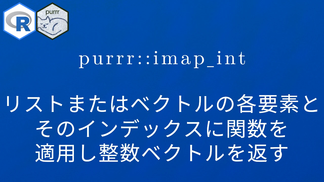 R言語で、リストまたはベクトルの各要素とそのインデックスに関数を適用し整数ベクトルを返す方法について解説します。ここではtidyverseパッケージに含まれているpurrrパッケージのimap_int()を使用した方法についてお伝えします。
