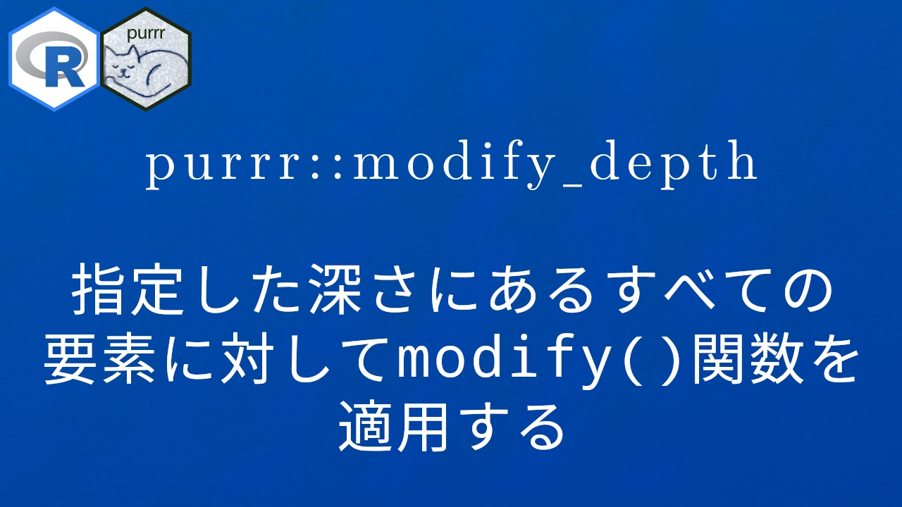 R言語で、指定した深さにあるすべての要素に対してmodify()関数を適用する方法について解説します。ここではtidyverseパッケージに含まれているpurrrパッケージのmodify_depth()を使用した方法についてお伝えします。
