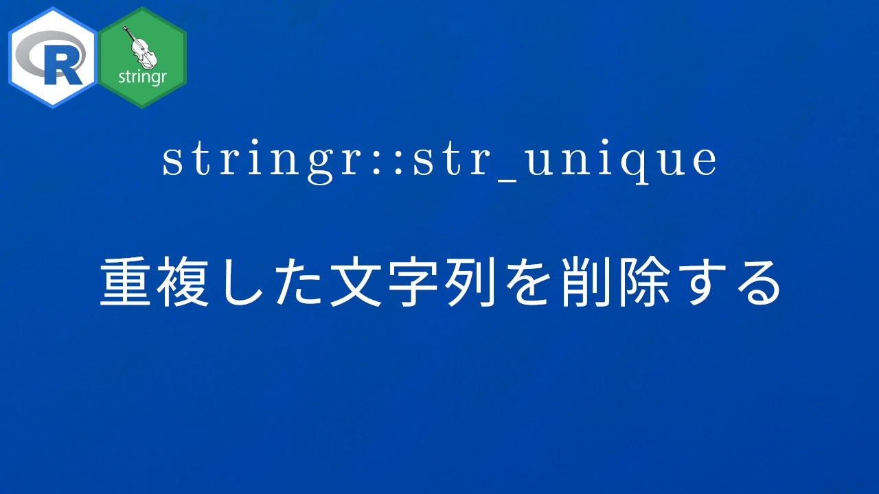 R言語で、重複した文字列を削除する方法について解説します。文字列の操作には、tidyverseパッケージに含まれているstringrパッケージを使用するのが便利です。ここでは、stringrパッケージのstr_unique()を使用した方法についてお伝えします。
